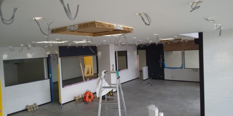 先日、テナント工事で照明用の天井の開口とケーブルの配線をしました。