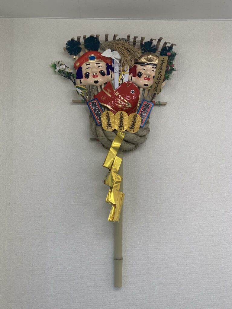 さて本日は、社長が買ってきてくれた熊手の飾りつけをしました。